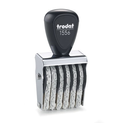 Klassieke handstempel met 6 cijfers en handgreep.